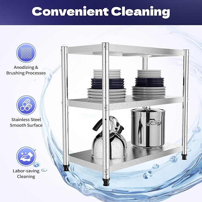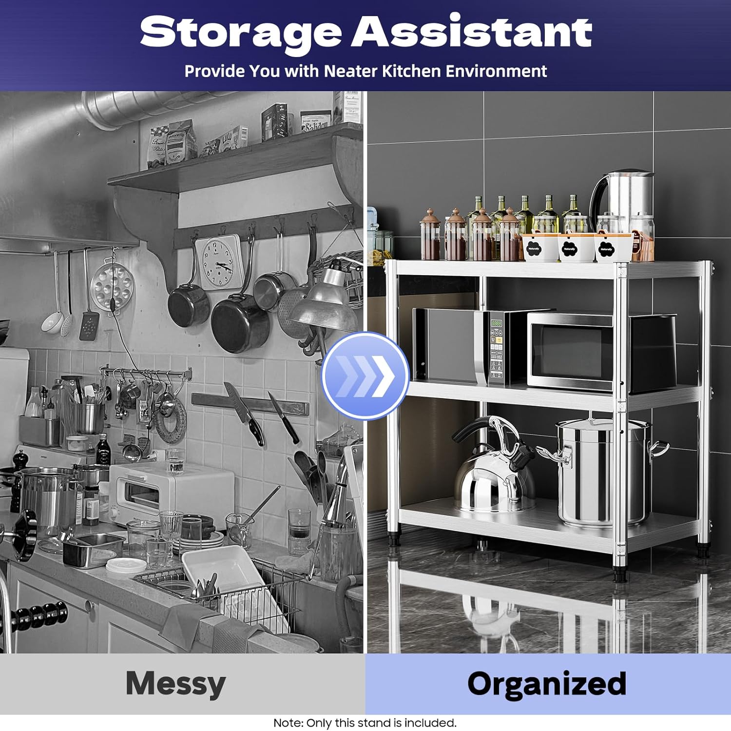 Durable Stainless Steel Construction: Made from premium stainless steel, this shelving unit is built to handle heavy items while resisting rust and wear.